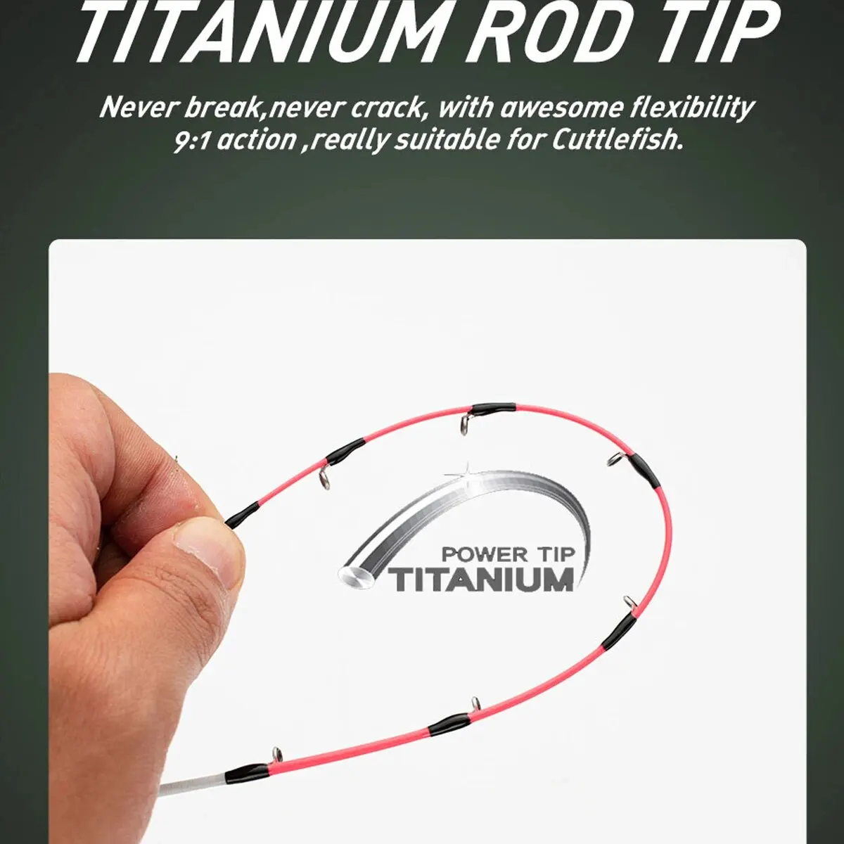 带钛尖的船钓竿 1.8 米 ML 旋转抛投钓鱼竿,适用于乌贼钓鱼竿,带螺旋环